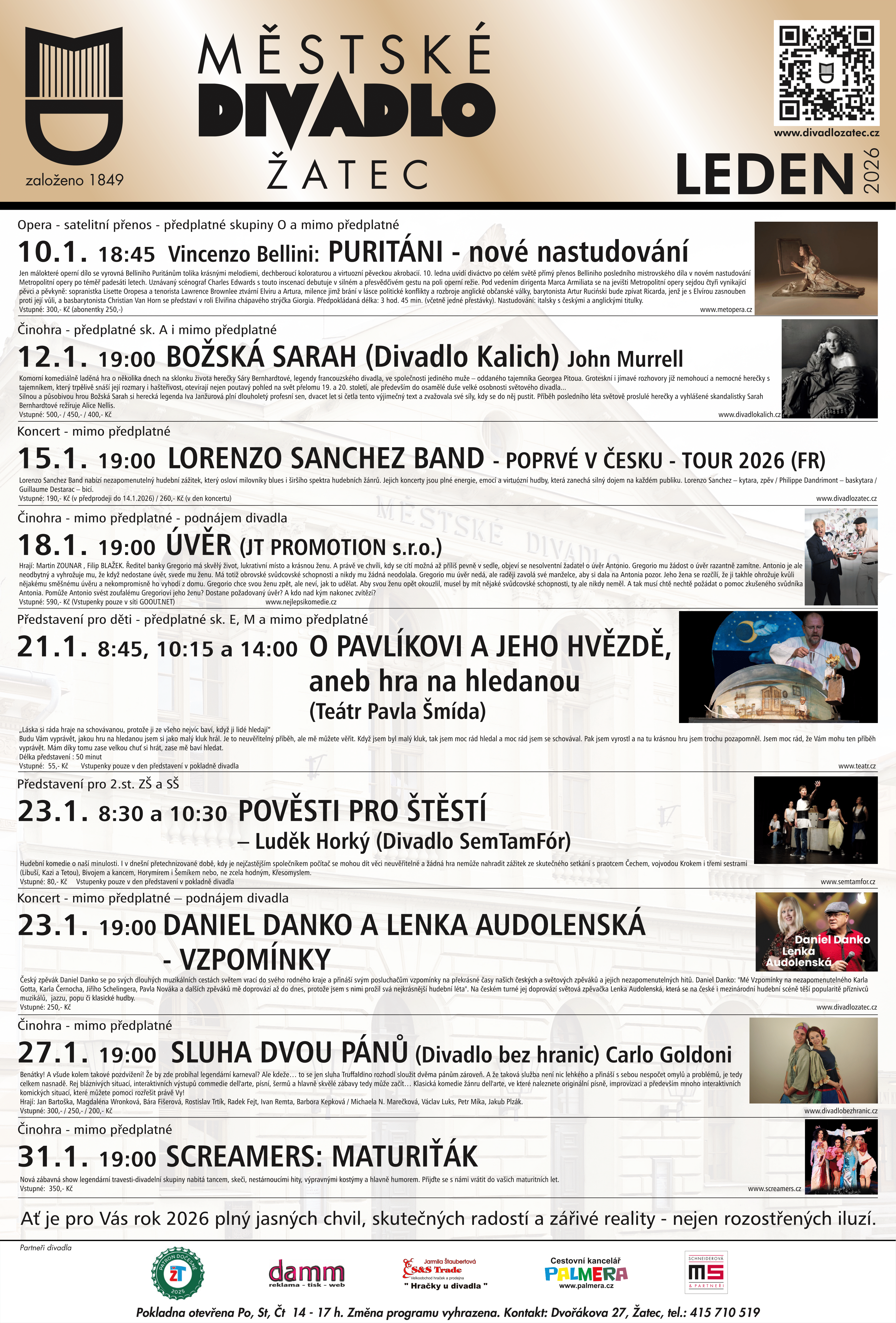 Program Městského divadla leden 2026 ke stažení ZDE, program Digitálního kina ke stažení ZDE.